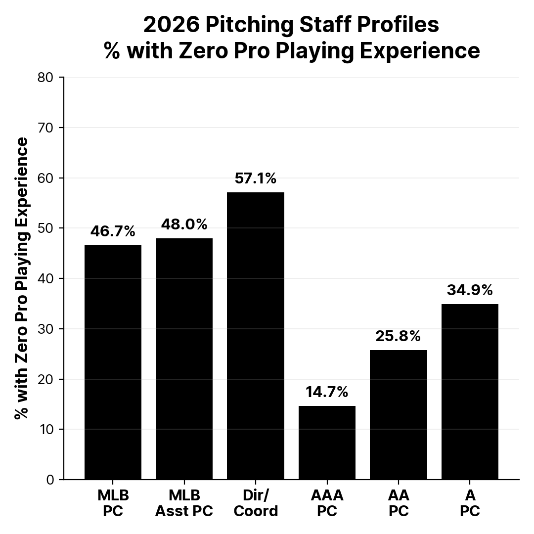 46.7% of MLB Pitching Coaches (14 of 30) never played professional baseball.