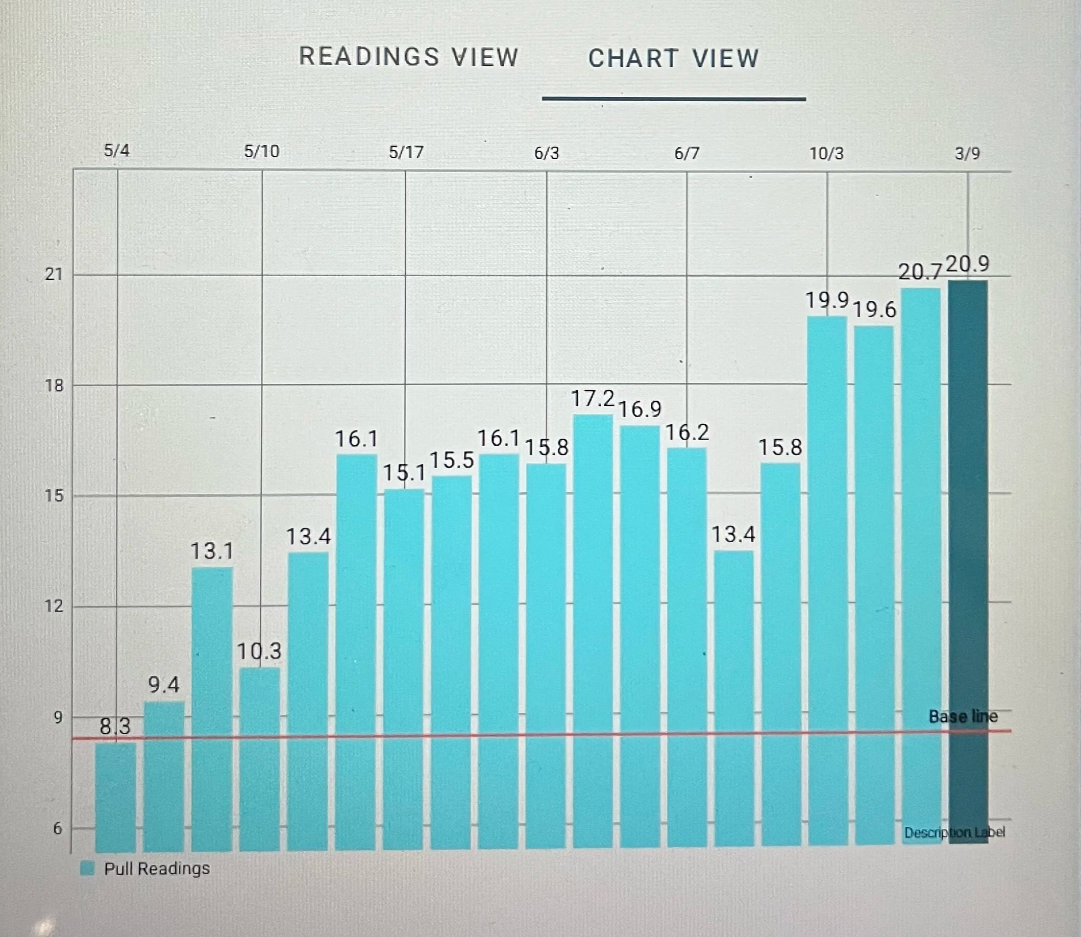 Since October, my LiveArm pull readings have consistently stabilized between 20 and 22, even as my throwing workload has increased.